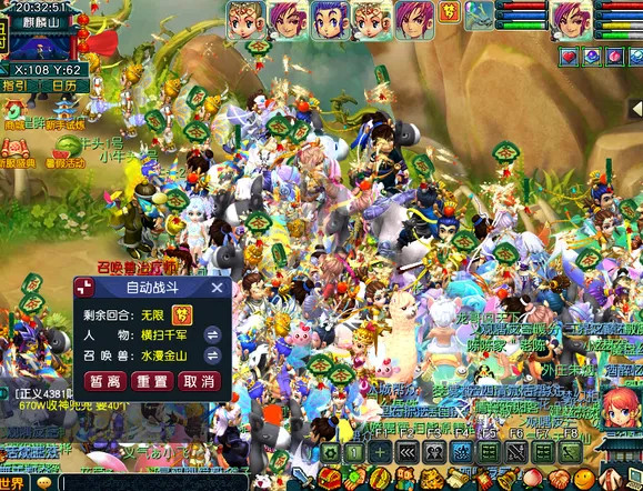 于是出现了大部队全在麒麟山烧双的壮观景象,这乌压压的一片全是人。不过,按理说,有双倍抓鬼不是更好吗?除了经验、环装外,还有金钱奖励。对此玩家表示,因为新区号的底子差,碰到血鬼的话可能要磨10回合,效率实在太低了,而烧双只需要用系统送的召唤兽和一身60级环装,就能在该处纵横驰骋,一般2回合就能结束战斗,收益是抓鬼的几十倍,所以没人会去抓鬼的。